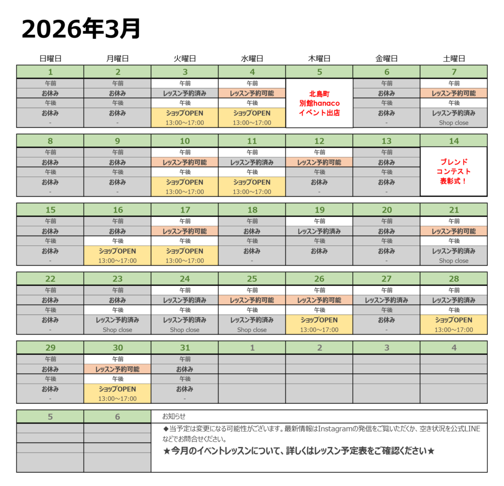 今月の予定